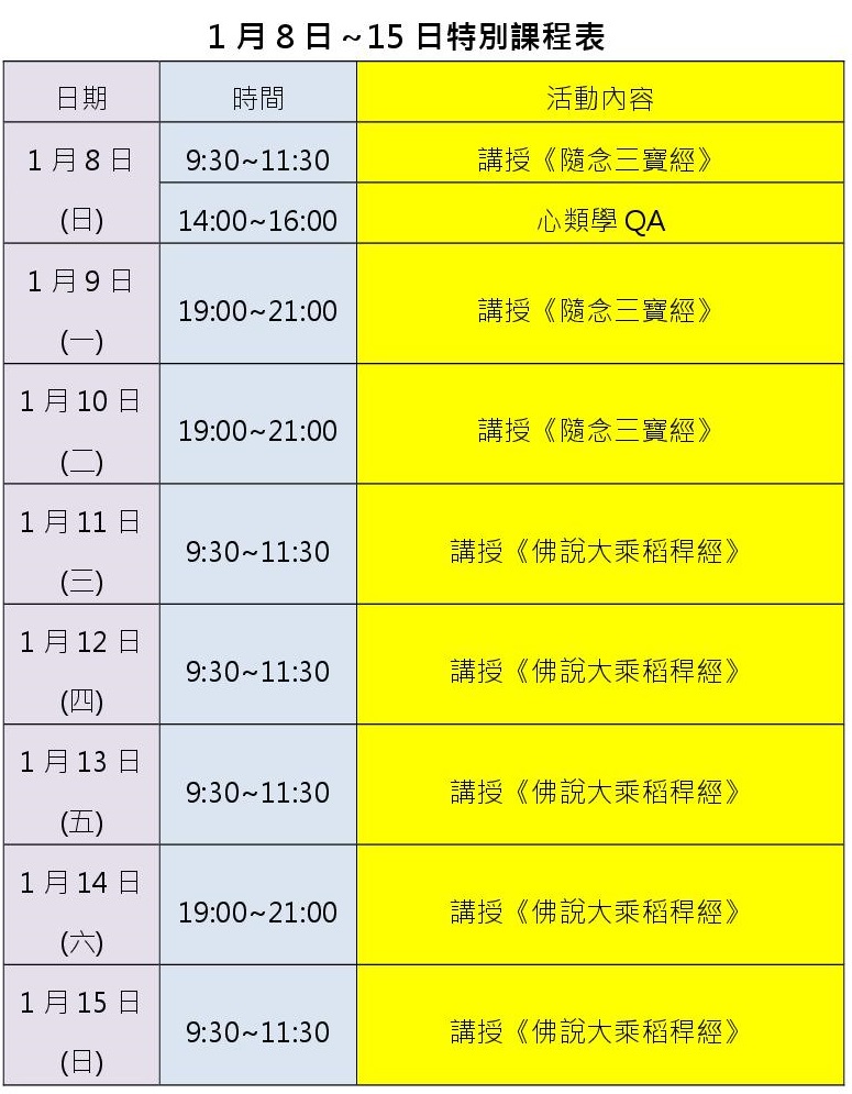 (註:可填寫消災除障超薦表、名單請交各班班長或提前至會場填表)