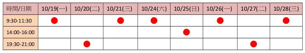 ●時間:如下表,共八堂。